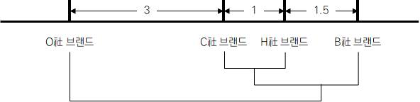 ■ 앞서 예에서 가장 가까운 C社와 H社, B社 브랜드의 순서대로 묶어나가게 됨