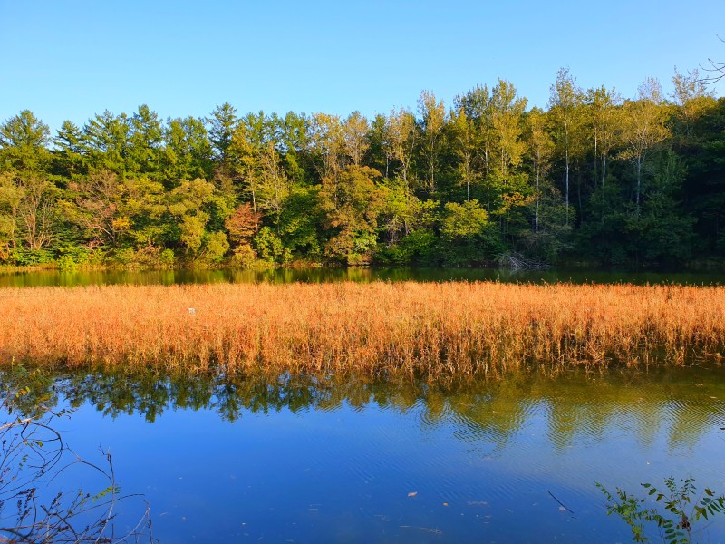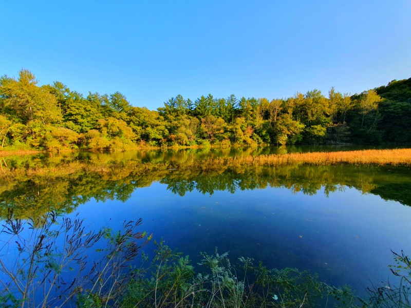 날씨가 주는 영향만 없다면 이곳은 사시사철 수면이 잔잔한 곳이기에 강물위로 비치는 반영이 주는 멋진 풍경을 언제나 만나볼 수 있습니다.봄에는 흩날리는 야생벚꽃이 강물에 가득 떠있었고 여름에는 푸른 밤하늘을 배경으로 별들이 쏟아지던 곳인데, 모든 수목이강렬한 색감으로 물드는 10월 말 즈음, 이곳의 모습은 또 어떻게 변하게 될까요?
