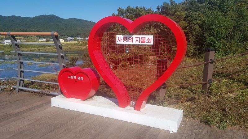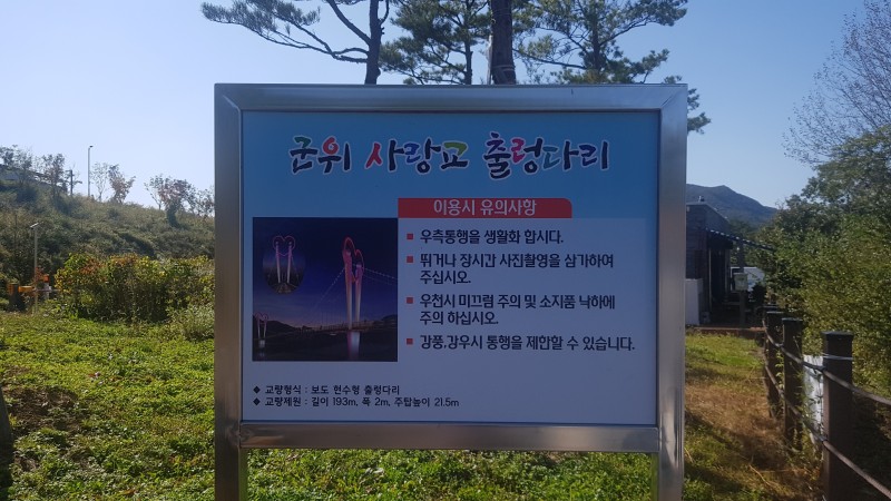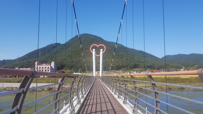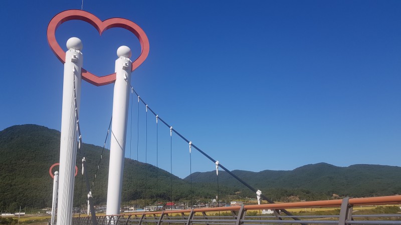 하트 다리의 이름은 군위 사랑교 출렁다리였어요.