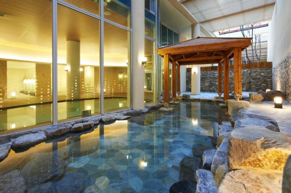 유황온천의 주요 성분은 양이온인 나트륨, 칼륨, 칼슘, 마그네슘과 음이온 탄산수소, 염소, 탄산, 황산 등이 다량 함유된 알카리성 중탄산나트륨 온천수입니다. 천연 온천수가 지하 950m 지점에서 29° C의 온도로 하루 500톤씩 뿜어져 나오는데요. 마시기도 한다는 유황천은 신경통, 금속 중독, 당뇨병, 관절염, 외상 후유증에 탁월한 효과를 자랑하죠.