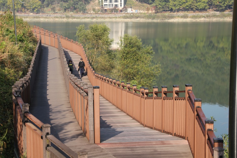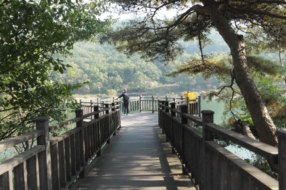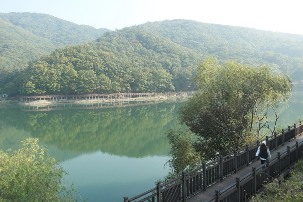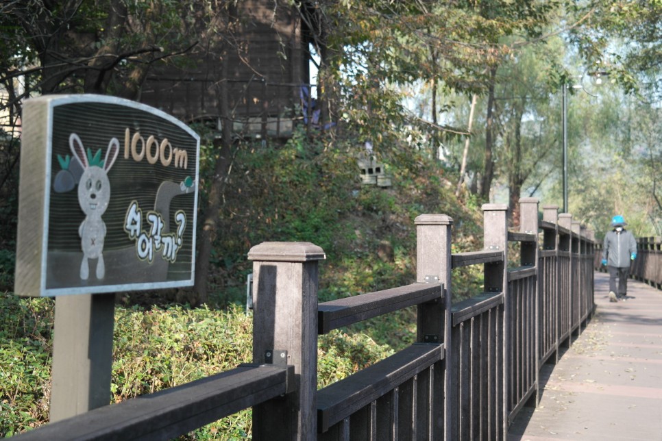 제방길을 벗어나 약간의 높고 낮음이 이어지는 데크길을 약간은 빠른 걸음으로 만보기 앱을 켜고 상쾌하게 걸어보았습니다. 연로하신 어르신도 불편 없이 걸을 수 있는 곳이어서인지 이른 아침에는 운동을 겸해 이곳을 찾는 분들의 모습을 볼 수 있었습니다.