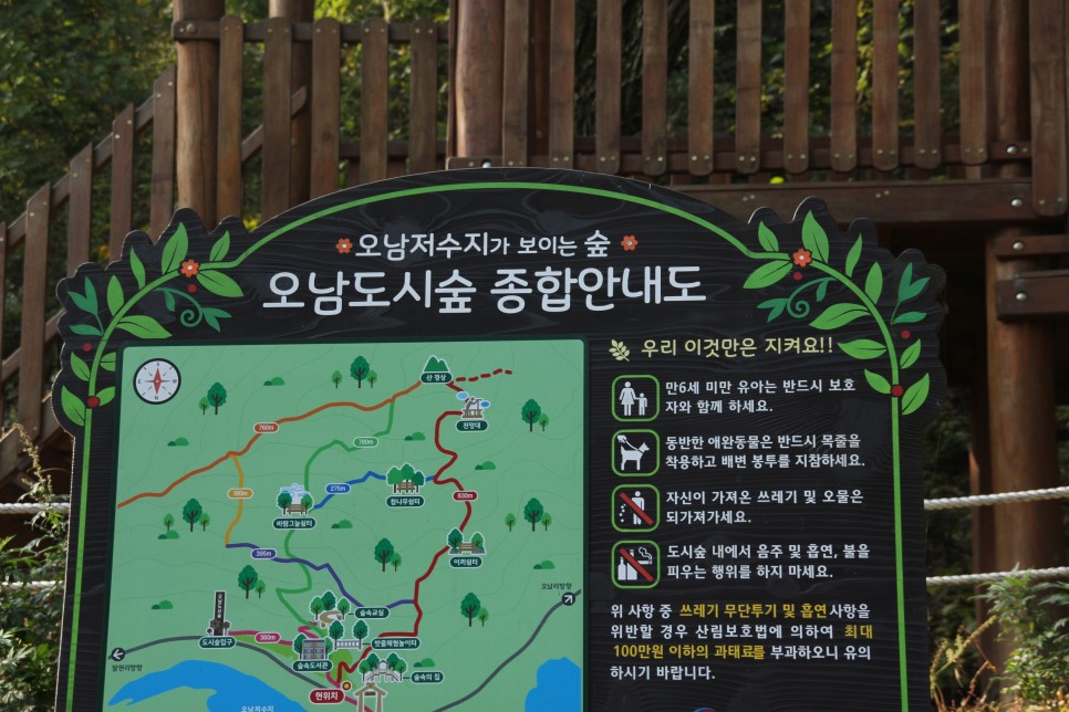 오남호수공원은 어린 자녀와 함께 방문해도 좋습니다. 길 건너편으로 오남도시숲과 유아숲 체험장이 조성되어 있기 때문인데요. 오남 도시숲은 아래로는 오남저수지가 보이고 위로는 도시숲이 조성되어 오남호수공원 산책로를 이용하는 관광객 및 지역주민이 도시숲의 그늘에 들어와 쉬어갈 수 있는 공간입니다.