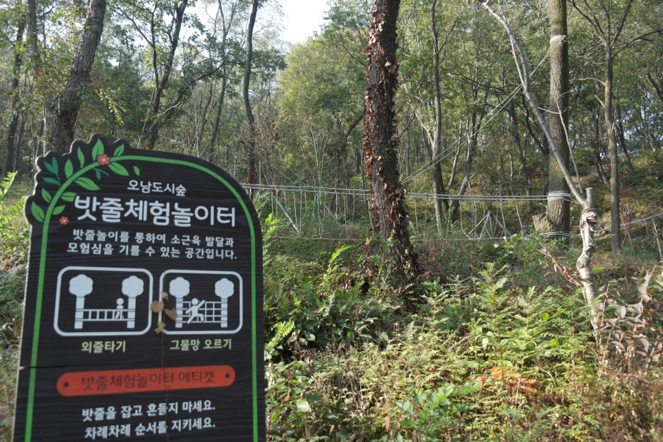 오남 도시숲에는 밧줄체험놀이터, 숲 도서관 등이 있어 아이들과 즐길 수 있는데요. 특히, 남녀노소 상관없이 쉽게 이용할 수 있는 등산코스가 난이도에 따라 조성되어 있어 더욱 인기 만점인 곳이지요. 정상에서 내려다보이는 조망이 일품이라고 하니 다음번엔 꼭 한번 정상을 올라가 봐야겠네요.