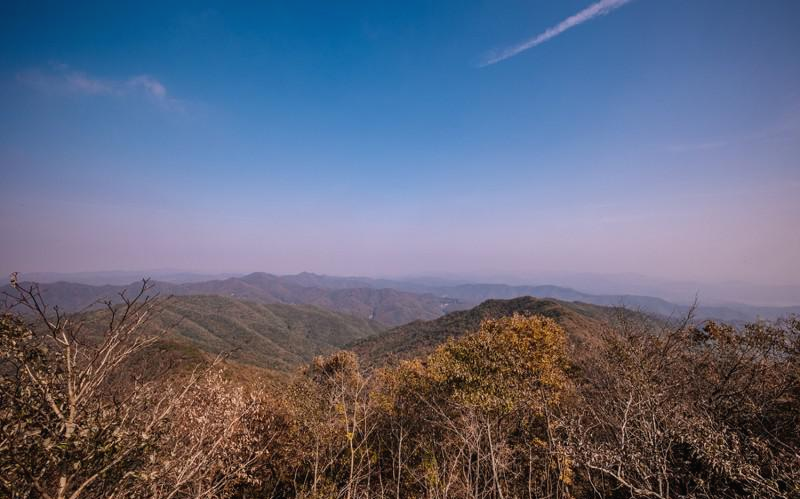 산으로 둘러싸여 첩첩산중이라는 말이 나올 법한 곳이 청양 칠갑산입니다. 정상은 헬기장도 있고 사면이 탁 트여 있지만 정상의 나무들이 시야를 가려서 만족스러운 전망은 아니었습니다. 그러나 부담없이 500m대의 산을 운동삼아 오르기에는 좋은 곳입니다.