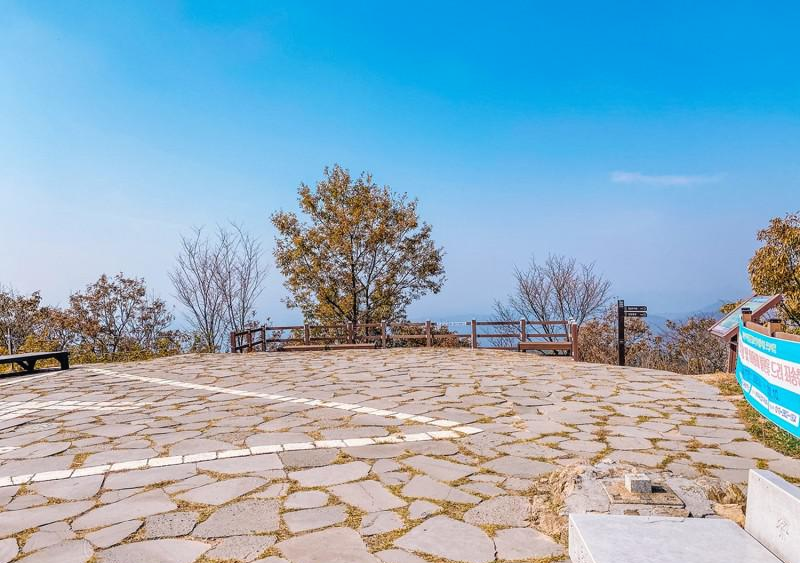 능선길을 따라 3km 정도를 걸으면 드디어 정상입니다. 정상에는 헬기장도 있을 만큼 탁 트인 공간입니다. 거기에 사면으로 열려 있고 데크도 잘 되어 있습니다. 도립공원 내에서 취사나 야영은 금지인 거 아시죠? 많은 이들이 즐기기 위해서 반드시 지켜야 할 수칙입니다.