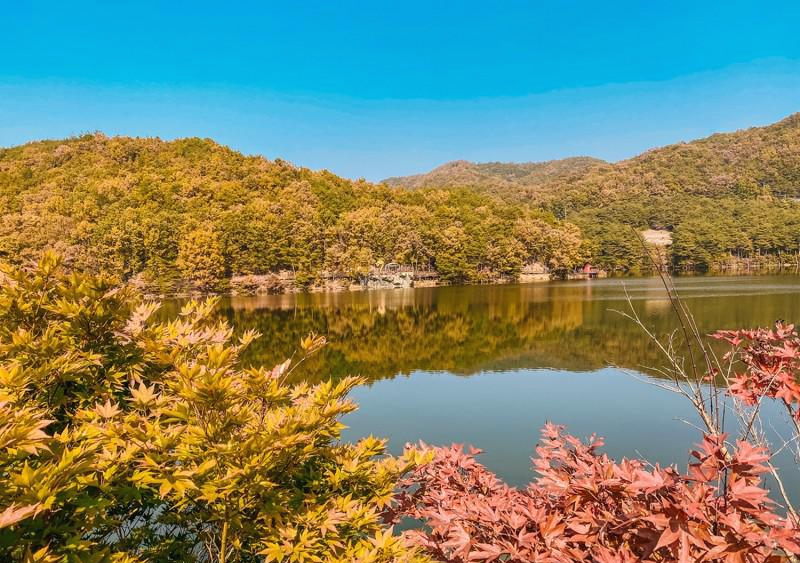 지금 천장호 주변은 한창 가을빛이 가득합니다. 제가 갔던 날은 바람이 없어서인지 호수에 비치는 그림자 또한 가을빛입니다.