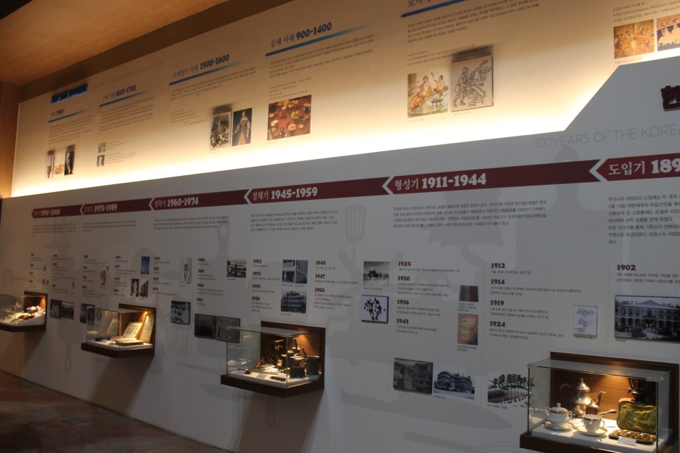 입구에 들어서 잠시 박물관 소개영상을 보다가 오른쪽으로 걸어 들어가면 우리나라 서양요리의 역사가 일목요연하게 정리되어 있습니다.