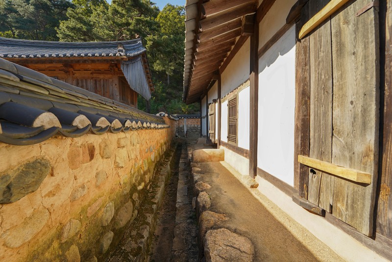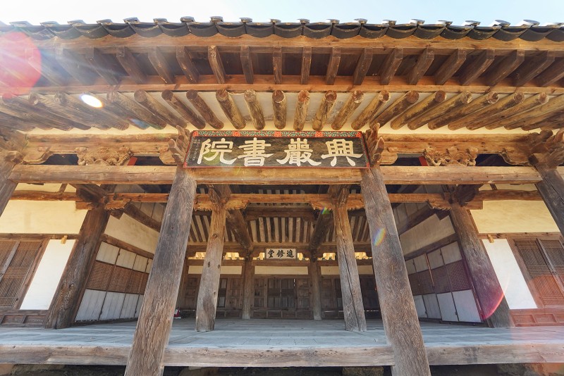 강당의 후면에 좌우로 동재인 의인재와 서재인 집의재가 있습니다. 서원의 전형적인 전학후묘의 모양새를 살짝 벗어난 흥암서원, 유생들의 숙소로 사용되던 의인재 뒤편을 통해 집의재를 바라보았습니다.