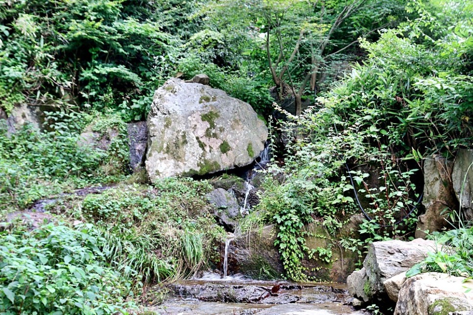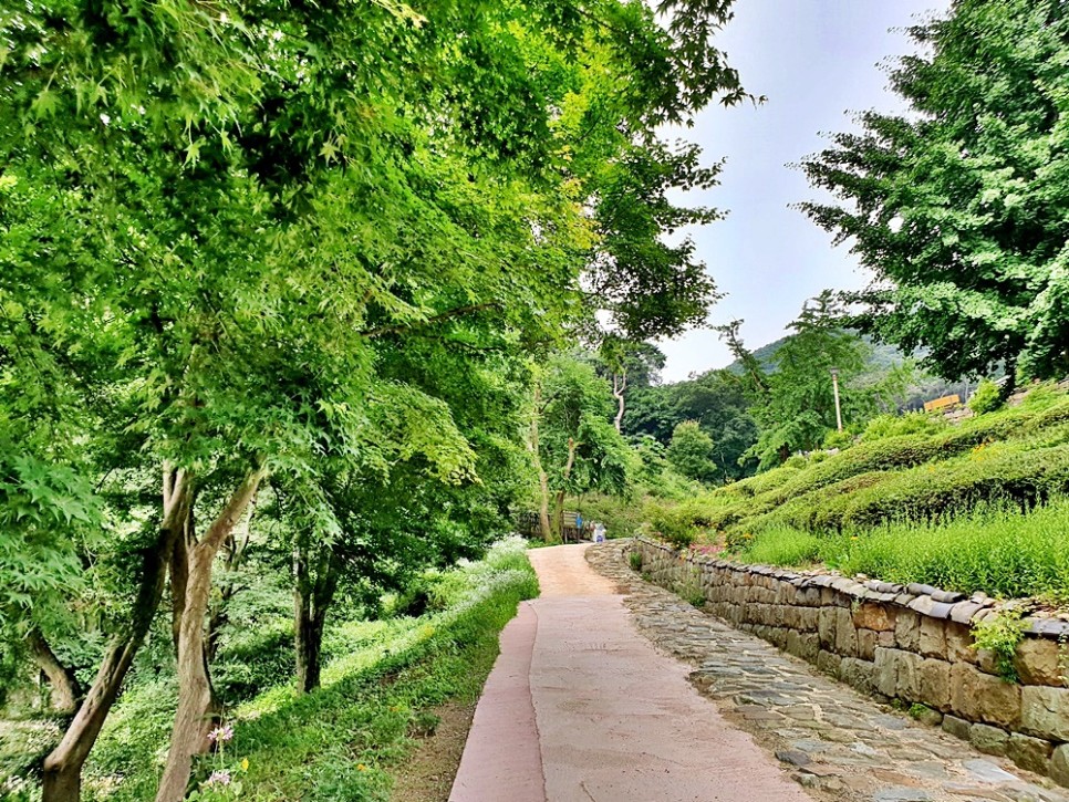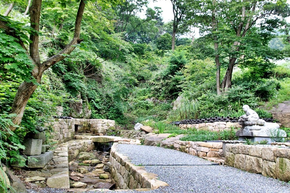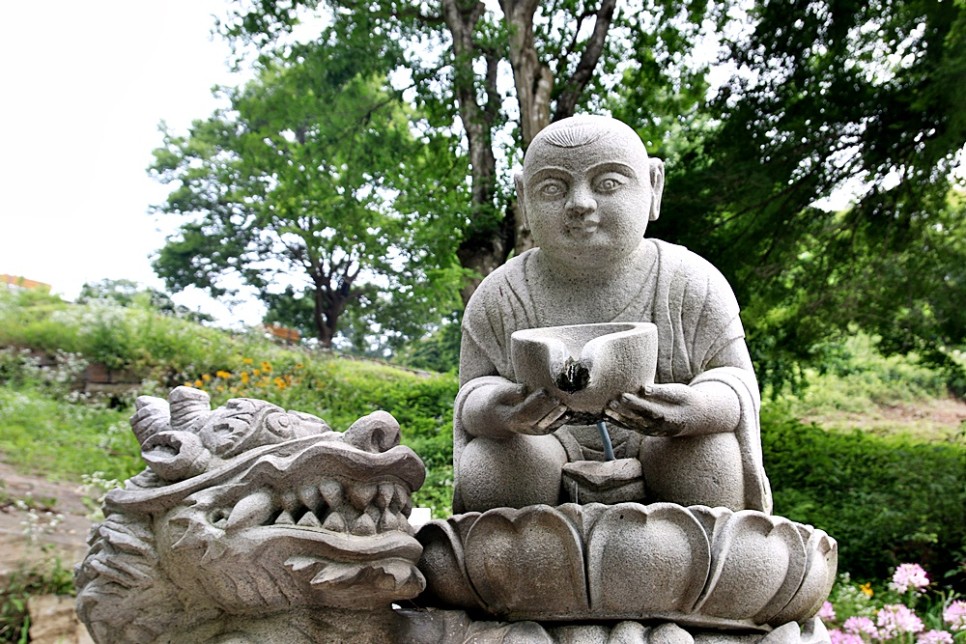 언덕길 아래로는 새 단장한 듯 느껴지는 작은 계곡이 있고 사찰 초입에 있던 동자승 약수터가 옮겨졌으며 다채로운 꽃들이 식재된 화사한 꽃밭도 조성되었습니다. 그러한 꽃들은 푸르른 초록 숲과 상반되어서는 더욱 화려하게 느껴졌지요.