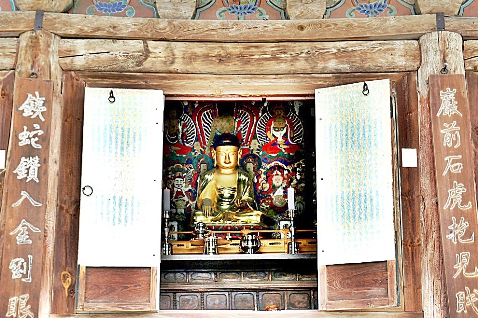 2019년 8월 보물 2036호로 지정된 문화재로 1790년 중창되고 1828년 이건 되었습니다. 정면 3칸 측면 3칸 5량의 맞배집 구조는 교세가 위축되었던 조선 후기 불전 건축의 전형적인 모습으로 빛바랜 단청이 더해져서는 더욱 소박하게 느껴집니다.